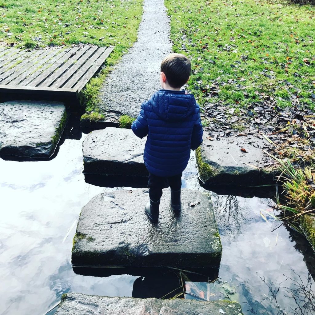 As you see the wee man wants to get to the other side of the water. He can do it! His options are 1 step at a time toward other side. He is willing! He done it!